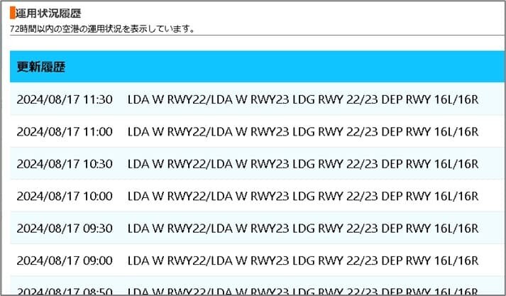 国交省は毎翌日(土日祝日を除く)、「羽田空港飛行コースホームページ」で「航跡動画」「航跡図」「過去の運用状況」を公開している(次図)。